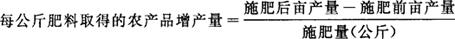 指评价施肥经济效果的指标,它反映施肥量与增产量的某种内在联系。其计算公式为:
