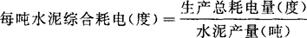 释义 | 每吨水泥综合耗电 指每生产1吨水泥所消耗的总电量。 其计算公式如下: 生产总耗电量,包括同生产有直接关系的用电量和辅助生产用电量两部分。同生产有直接关系的用电量,指矿石、生料、熟料、水泥制成、水泥出厂部分的用电量。辅助生产用电量,指机电车间、运输车间、化验、生产供水、供风、排水、检修及厂区、办公室、仓库照明用电和变配电损失。 不包括与产品无直接关系的用电量,如企业生活用电,基建工程用电等。 |