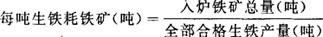 指每生产1吨合格生铁消耗入炉铁矿石的数量。其计算公式为: