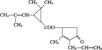 C19H26O3=302.41 CAS-584-79-2 (RS)-3-烯丙基-2-甲基-4-氧环戊-2-烯基(1R,3R)-2,2-二甲基-3-(2-甲基丙-1-烯基)环丙烷羧酸酯。 (RS)-3-Allyl-2-methyl-4-oxocyclopent-2-enyl-(1R,3R)-2,2-dimethyl-3-(2-methylprop-1-enyl)cycl-opropanecarboxyIate. 除虫菊酯类杀虫药。 比烯丙除虫菊酯。 Bioallethrin. BAN,USAN.