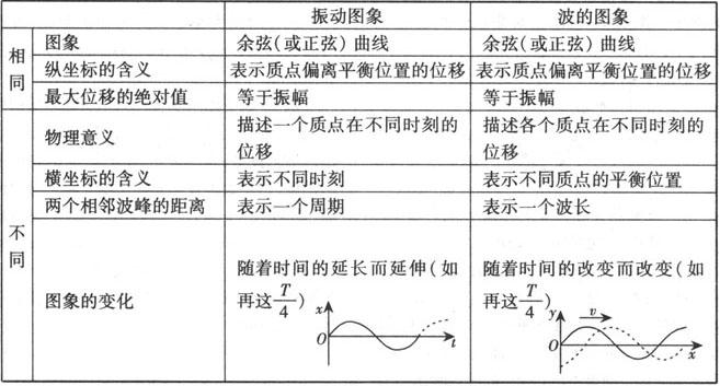 释义 | 比较振动图象与波动图象 例1 一列波在介质中向某一方向传播,如图所示为此波在某一时刻的波形图,并且此时振动还只发生在M、N之间,已知此波的周期为T,Q质点速度方向在波形图中是向下的,下列说法中正确的是( ). A.波源是M,由波源起振开始计时,P点已经振动时间T B.波源是N,由波源起振开始计时,P点 C.波源是N,由波源起振开始计时,P点已经振动时间 D.波源是M,由波源起振开始计时,P点已经振动时间 分析 因为此时Q质点向下振动,且此时Q质点右方邻近质点在Q点下方,说明波向左传播,所以N是波源,振动从N点传播到M点,经过一个周期,又P、N间水平距离为3λ/4,故质点已振动 答 C. 例2 简谐横波在x轴上传播,在某时刻的波形如图所示.已知此时质点F的运动方向向下,则( ). A.此波朝x轴负方向传播 B.质点D此时向下运动 C.质点B将比质点C先回到平衡位置 D.质点E的振幅为零 分析 由于质点F的运动方向向下,即可判断此波朝x轴负方向传播,选项A正确,确定此波朝x轴负方向传播,就可判断出质点D在此时向下运动,选项B正确.此时质点C向下运动,而质点B向上运动.质点C向下回到平衡位置,而质点B要向上运动到最大位移处再向下回到平衡位置,因此选项C项错误.振动的各质点的振幅应是相同的,质点的振幅不可能为零,选项D项也错误. 答 A、B. |