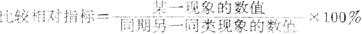 亦称“比较相对数”、“同类对比指标”。 反映同一时期内某类现象在不同地区或单位之间对比关系的指标。通常用百分数或倍数表示。例如,对比两个或两个以上地区或单位的总产值、单位产品原材料消耗、人口数、流通费率等,都可以计算相对数,作同类对比分析。计算公式为:  比较相对指标主要用来表明同一种现象在不同空间的对比和同一总体内的不同部分的对比。 对比的数值可用绝对数、相对数或平均数,但由于绝对数大小受单位规模不等的影响,所以通常都采用平均数或相对数。如1975年苏联国民生产总值为美国的53%,按每人平均计算为44%。 以每人耕地面积相比,加拿大为我国的17倍。1978年我国能源利用率为28%,日本为57%,两者相比,日本比我高出一倍,或者说我国不及日本的一半。 |