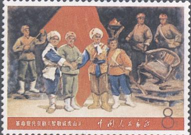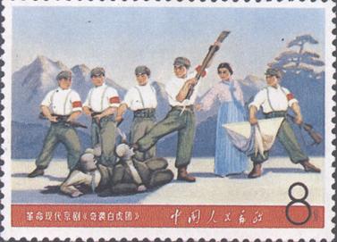 释义 | 毛主席的革命文艺路线胜利万岁 发行日期:1968年1月30日 齿孔度数:(1) 印刷版别:影写版 票幅:(1)60×40;(2)(3)(5)(6)(9)54×40;(4)40×54;(7)(8)52×31 全张枚数:(1)25(5×5);(2)(3)(5)(6)(9)28(4×7);(4)28(7×4);(7)(8)40(4×10) 设计者:孙传哲、万维生、李大玮、陈晓聪、孙明春、卢天骄、杨白子、黄里 印刷:北京邮票厂 (1)8分 毛主席的革命文艺路线胜利万岁 1000万枚 (2)8分 革命现代京剧《智取威虎山》1000万枚 (3)8分 革命现代京剧《海港》 1000万枚 (4)8分 革命现代京剧《红灯记》 1000万枚 (5)8分 革命现代京剧《沙家浜》 1000万枚 (6)8分 革命现代京剧《奇袭白虎团》 1000万枚 (7)8分 革命现代芭蕾舞剧《红色娘子军》 (1968年5月1日) 1000万枚 (8)8分 革命现代芭蕾舞剧《白毛女》 (1968年5月1日) 1000万枚 (9)8分 革命交响音乐《沙家浜》 (1968年5月1日) 1000万枚 (1)-(9) 9枚全 |