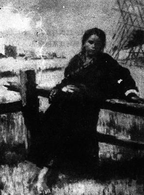 【作品赏析】: 1955年,董希文随北京“八一”电影制片厂摄影队,沿红军长征路线作一次历时近半年的旅行,画了许多风景和人物写生,记录了红军长征经过地区的新面貌。 这些写生受到广泛好评,其中的《泸定铁索桥》、《芦花青稞丰收》、《原始森林下宿营》、《草地黄河源》、《藏女像》(《藏女珂管》)和这幅《毛儿盖姑娘》是写生作品中较为突出的几幅。这些画虽然是未经修饰的旅途写生,但画家将写生的对象与中国革命历史上的伟大进军联系起来,往往带有历史题材的庄严和激昂。《毛儿盖姑娘》描绘一个斜倚在畜栏上的藏族少女,人物形象与自然景色十分谐和,给观者以开阔、质朴、明朗、犷野的印象。 画面上,身著茶褐色长袍的妇女的形体,与畜栏的木柱、远处的地平线,构成互相交错、互相呼应的关系,把我们的视线引向画面中心,也使这幅只有一个人物的画面具有生动的节奏感。深褐色的人物安置在鲜明的土黄、淡绿的背景上,再加透明的蓝天白云,增加了作品明朗、热烈的情调。在人物形象的描绘上,作者避免了多余的修饰和脱离生活的夸张。这在同类题材的作品中是难能可贵的。。  现代 董希文 油画 |