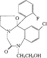 C19H18ClFN2O3=376.81CAS-27060-91-9 10-氯-11b-邻-氟苯基-2,3,7,11b-四氢-7-(2-羟乙基)噁唑异(3,2-d][1,4]苯并二氮杂 -6(5H)-酮。 10-Chloro-11b-(o-fluorophenyl)-2,3,7,11b-tetrahydro-7-(2-hydroxyethyl)oxazolo[3,2-d][1,4]benzodiazepin-6(5H)-one. 抗焦虑药,安定药。 氟太唑仑。 Coreminal,Flutazolam. INN,JAN,USAN,MI.  |