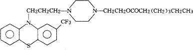 C29H38F3N3O2S=549.69 CAS-2746-81-8 庚酸2-[4-[3-[2-(三氟甲基)-10H-吩噻嗪-10-基]丙基]-1-哌嗪基]乙酯。 2-[4-[3-[2-(Trifluoromethyl)-10H-phenothiazin10-yl]propyl]-1-piperazinyl]ethyl heptanoate. 强安定药。用于精神分裂症。 庚氟奋乃静。 Fluphenazine Enanthate,Prolixin Enanthate,Moditen,Enanthate. BP,JAN,USAN,USP,MI.