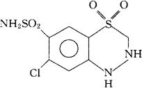 C7H8ClN3O4S2=297.73 CAS-58-93-5 6-氯-7-氨磺酰-3,4-二氢-2H-1,2,4-苯并塞二嗪-1,1-二氧化物。 6-Chloro-7-sulfamoyl-3,4-dihydro-2H-1,2,4-benzothiadiazine-1,1-dioxide. 利尿药及抗高血压药。用于各种类型的水肿及高血压症。 双氢克尿噻,双氢氯噻嗪,氢氯苯噻(台)。 Hydrochlorothiazide,Ortic,Thiurefic. 氢氯噻嗪片(双氢氯噻嗪片)。 INN,BAN,BP,DCF,DCIT,GDP,HP,IP,JP,NFN,USAN,USP,MI.