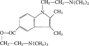 释义 | 氨吲哚酯 C19H29N3O2=331.46 CAS-31386-24-0 1-[2-(二甲基氨基)乙基]-2,3-二甲基吲哚5-羧酸2-(二甲基氨基)乙醇酯。 2-(Dimethylamino)ethyl 1-[2-(dimethylamino)ethyl]-2,3-dimethylindole-5-carboxylate. Amindocate. INN,USAN. |