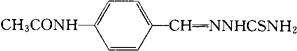 C10H12N4OS=236.29 CAS-104-06-3 4′-甲酰乙酰苯胺4′-缩氨基硫脲。 4′-Formylacetanilide 4′-(thiosemicarbazone). 抗结核药与抗麻风药。用于各型活动性结核。 氨苯硫脲,硫脲胺,硫醋腙,结核安,替比昂。 Thioacetazone,Thiacetazone,Amithiozone,TB-1, Thioparamizone,TBI/698. 氨硫脲片(胺苯硫脲片,TB-1片)。 INN,BAN,BP,DCF,IP,JP,NFN,USNA,USP,MI.  |