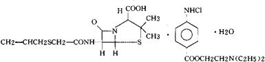C26H37ClN4O6S2·H2O=619.19 CAS-575-52-0 3,3-二甲基-7-氧代-6-[[(2-丙烯基硫代)乙酰]氨基]-4-硫杂-1-氮杂双环[3.2.0]庚烷-2-羧酸-2-氯普鲁卡因盐一水化合物。 3,3-Dimethyl-7-oxo-6-[[(2-propenylthio)acetyl amino]-4-thia-1-azabicyclo[3.2.0]heptane-2-carboxylic acid-2-chloroprocaine salt monohydrate, 抗生素类药(抗菌药)。 氯普鲁卡因阿美西林。 Penicillin O Chloroprocaine,Almecillin Chloroprocaine,Chloroprocaine Penicillin O,Depocer-O-cillin Chloroprocaine. USAN,MI.