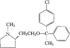 C21H26ClNO=343.90 CAS-15686-51-8 (+)-2(2R)-[2-[(R)-对(4-氯-α-甲基-α-苯基苄基)氧]乙基]-1-甲基吡咯烷。 (+)-(2R)-2-[2-[(R)-p-Chloro-α-methyl-α-phenylbenzyloxy]ethyl]-1-methylpyrrolidine. 抗组胺药。 克立马丁,吡咯醇胺。 Clemastine,Clemanil,Meclastine. INN,BAN,DCF,DCIT,JAN,JP,NFN,USAN,USP,MI.  |