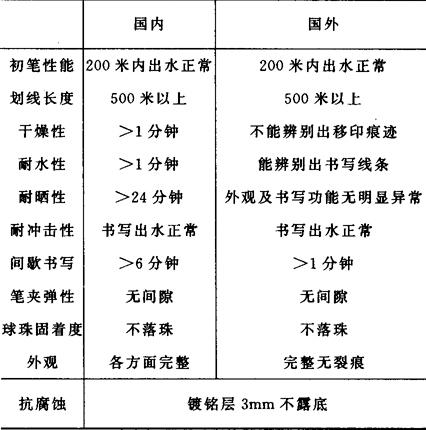 释义 | 水性圆珠笔 水性圆珠笔(又称滚珠笔、宝珠笔、龙珠笔)是近年来国际上新开发的一种书写工具,它既有油性圆珠笔能复写、便于携带的特点,又具有自来水笔书写不漏油、不冒油、能存档的优点,因而使用范围极其广泛,在国际上大有取代油性圆珠笔和自来水笔的趋势。 据资料统计,日本1992年水性圆珠笔的年产量为4亿~5亿支,1993年生产宝珠笔、圆珠笔达12亿支以上,其中宝珠笔就占52.4%,说明宝珠笔的产量已超过油性圆珠笔的产量。从日本出口情况来看,1993年出口数近8亿,其中宝珠笔(水性圆珠笔)占60%以上,目前水性圆珠笔的生产量为全世界笔类产品20%。 水性圆珠笔发展较快的有日本和意大利两个国家,其他国家开发此类产品的速度较慢,我国对水性圆珠笔已处在开发之中,并投入批量生产。 水性圆珠笔与一般的圆珠笔一样也由笔壳和笔芯组成,其区别主要在笔芯,圆珠笔应用的油性墨水,而水性圆珠笔的笔芯用的是水性墨水。 水性圆珠笔芯的结构大体上可分为外观和内在两大部分,外观由芯干、尾塞、笔项组成;内在由笔尖、引水芯、卷包芯3部分组成。卷包芯起储墨水用,相当于墨水瓶,书写时所用的墨水都是由它供应的。卷包芯是用纤维经过加工卷曲而形成波浪形,卷曲的空间是储藏墨水处,外面用PP塑料薄膜包成圆柱体,吸墨水量控制在80%~90%,过于饱和会造成倒流,过少达不到标准要求。引水芯起到引墨水和供应墨水的作用。 笔尖的墨水是通过引水芯的作用提供的,它是利用毛细管虹吸现象把墨水从卷包芯内引出而送到笔尖环槽角的,因此,引水芯要达到3个要求:吸水速度要快;引水芯对墨水不能起吸色作用;引水芯角度形状和笔头眼角度配合要适当。 笔头能控制书写时的出墨量,是书写质量好坏的重要因素,对其加工质量的要求较高,特别是公差配合要求很高,所以一般圆珠笔设备难以达到互配要求,必须选择加工精度高的设备来制造水性笔的笔头,才能达到高质量的效果。当圆珠书写滚动时,墨水流出书写在纸张上,当圆珠不转动时,可阻止墨水从圆珠中漏出。 另外,水性笔对墨水要求也相当重要,其pH值约7~8,具有一定的表面张力,和合适的粘度,不同材料的笔头须配不同的墨水,不能千篇一律。 目前我国丰华圆珠笔股份有限公司已开发了三号水性圆珠笔,它的各项性能指标通过测试全部达到了行业标准及日本同类产品的标准。同时已批量生产。 国内外的水性圆珠笔的各参数比较见表7-9-5。 表7-9-5 |