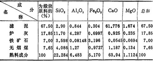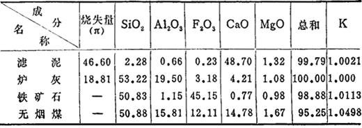 释义 | 水泥生产配料计算 采用拼凑法,此法是根据原料的成分,算出生料的成分,再考虑煤灰的掺入,计算出熟料的成分和率值。如不符合所要求的率值范围,则需调整原料的配比,重新计算,这样直至达到要求为止。现以滤泥、炉渣、铁矿石三种原料配料为例,计算如下。 1.原燃料的化学分析 表7-80 原燃料的化学成分 2.换算为100%的成分 表7-81 换算为100%的成分 3.煅烧后生料中的成分 表7-82 煅烧后生料中的成分 4.无烟煤耗用量 已知:煤低位发热量 熟料单位耗热量g=2000千卡/公斤熟料 煤灰分 AP=24.9% (1)每吨熟料耗煤量为: (2)煤灰分掺入量为: 5.经拼凑法计算调整后的熟料化学成分 表7-83 调整后的熟料化学成分 6.石灰饱和系数和各率值计算 (1)石灰饱和系数: (2)铝率氧: (3)硅率: 7.烧成一吨熟料块(不考虑掺入的煤灰成分),各种干燥原料的消耗量计算 (1)煅烧后滤泥的数量: (2)煅烧后炉灰的数量: (3)煅烧后铁矿石的数量: 各种干燥原料的使用量以 原料需用量如下。 每吨熟料,即100公斤熟料需用干燥后的原料数量。 (1)滤泥的数量为: (2)炉灰的数量为: (3)铁矿石的数量为: 生料的理论消耗量为1682.0公斤,即每吨熟料理论消耗生料量为1682公斤,即料耗比为1∶1.682。 8.各种干燥原料的消耗百分比 9.调整后生料中各项原料的配合比及生料的化学成分 表7-84 各项原料的配合比及生料的化学成分 10.熟料的单位原燃料消耗定额,考虑煤灰加入后,每吨熟料消耗干燥的生料粉 (1)干燥滤泥的消耗量为: (2)干燥炉灰的消耗量为: (3)干燥铁矿石的消耗量为: 11.无烟煤的消耗百分比为 (1)煤耗为生料的百分比为: (2)折合成标准煤耗为 |
