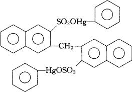 释义 | 汞加芬 C33H24Hg2O6S2=981.85 CAS-14235-86-0 苯汞3,3′-亚甲基双(2-萘磺酸盐)。 Phenylmercuric 3,3′-methylenebis(2-naphthalenesulfonate). [μ-[3,3′-亚甲基双[2-萘磺酸基](2-1)]二苯基]二汞。 [μ-[3,3′-Methylenebis[2-naphthalenesulfonato](2-1)]diphenyl]dimercury. 抗真菌药,消毒防腐药。 Hydrargaphen, Conotrane, Fibrotan,Hydraphen,Peneton,Penotrane,Septotan,Versotrane. INN,BAN,USAN,MI. |