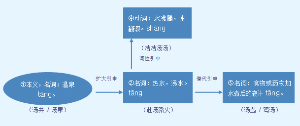 字源解说 昜,既是声旁也是形旁,是“陽(阳)”的本字,日照,表示天然的温热。汤,金文 = (水,泉流)+ (昜,即“阳”,表示天然的温热),表示温泉。造字本义:天然具有热度的温泉。篆文 承续金文字形。隶书 将篆文的 写成 。 附 文言版《説文解字》:汤,熱水也。从水昜聲。 附 白话版《说文解字》:汤,热水。字形采用“水”作边旁,“昜”是声旁。 引申线索