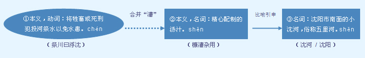释义 | ![]() (1瀋) 字源解说 本 字“沈” “沈”、“沉”本同源,后分化。沈(chÉn),甲骨文 ![]() ![]() ![]() ![]() ![]() ![]() ![]() ![]() ![]() ![]() ![]() ![]() ![]() ![]() ![]() ![]() ![]() 合并字“瀋”的读音 shěn ,这是合并过程发生的“变读”现象。 合并字“瀋” 審,既是声旁也是形旁,即“审”,表示认真观察、慎重判断。瀋(shěn),篆文 ![]() ![]() ![]() ![]() ![]() ![]() ![]() ![]() ![]() ![]() ![]() 沈 文言版《説文解字》:沈(chÉn),陵上滈水也。从水冘聲。一曰濁黕也。 沈 白话版《说文解字》:沈(chÉn),山巅上的洼地积水。字形采用“水”作边旁,“冘”作声旁。一种说法认为,“沈”是污浊的秽物。 瀋 文言版《説文解字》:瀋(shěn),汁也。从水審聲。《春秋傳》曰:“猶拾瀋。” 瀋 白话版《说文解字》:瀋(shěn),汤汁。字形采用“水”作边旁,“審”作声旁。《春秋传》上说:“(如此徒劳的举动)就像去拾取倒在地上汤汁。” 引申线索 ![]() 【字族索引】 冘 【同音字】 chén shěn |