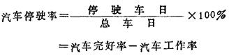 释义 | 汽车停驶率 汽车停驶车日在总车日中所占的比重。其计算公式为: 汽车停驶率表示营运车中非保修原因而未能工作的车辆所占的比重。降低停驶率的主要途径是:加强货源的组织工作;建立和健全生产岗位责任制,减少司机缺勤;改善道路条件,保持车辆畅通,达到晴雨通车;加强运输的均衡性,尽量做到淡季不淡(如有计划地安排提前运输)等。 |