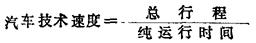 释义 | 汽车技术速度 营运车在出车过程中,平均每小时的行驶速度,亦即车辆在纯运行时间内平均每小时行驶的里程,以公里/小时表示。其计算公式为: 汽车技术速度是反映汽车行驶速度快慢的指标。汽车动力性能和结构、道路条件(如道路路面、宽度、坡度、弯道等)、所运货物的特征(如体积、形状、包装情况、特殊要求等)、行车密度、车辆载重量等客观因素,以及车辆保修质量和驾驶员的技术水平等,对技术速度均有影响。 |