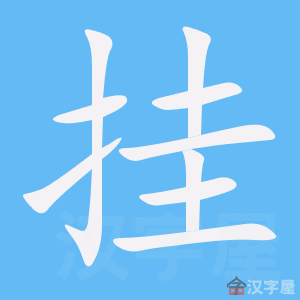 释义 | ![]() 表示某种行为动作。常作带宾、带补谓语。 墙上~着一件大衣|葡萄架上~着一串串亮晶晶的葡萄|铁门上~着一把大锁|他给学校~了一个电话|对方把电话~了|他总是~着学校里的事|冰清玉润的月牙,像是“~”在深蓝色的夜空|钉子把衣服~住了|胡须上~起了霜|清晨我去医院~了一次号|请你把这件衣服向上~一~。 多用于成套或成串的东西。常与数词构成数量词组充当定语或状语。当数词是“一”时,可重叠为“一A一A”或“一AA”,表示“多”或“逐一”的意思。 一~四轮大车|他家有好几~大车|一~一~的鞭炮就这样一~~地被他们放完了。 【近】 〈量〉套 串 【词语】 挂表 挂车 挂斗 挂钩 挂号 挂面 挂名 挂牌 挂牵 挂失 挂图 挂羊头卖狗肉 挂一漏万 挂钟 挂轴 字源解说 挂,篆文 ![]() ![]() ![]() ![]() ![]() ![]() 附 文言版《説文解字》:挂,畫也。从手,圭聲。 附 白话版《说文解字》:挂,画分。字形采用“手”作边旁,采用“圭”作声旁。 引申线索 ![]() 【字族索引】 圭 【同音字】 guà |