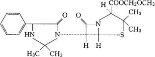C21H27N3O5S=433.52 CAS-40966-79-8 6-(2,2-二甲-4-苯基-5-氧代-1-咪唑烷基)青霉烷酸甲氧基甲酯。 6-(2,2-Dimethyl-4-phenyl-5-oxo-1-imidazolidinyl)penicillanic acid methoxymethyl ester. (2S,5R,6R)-6-(2,2-二甲基-5-氧代-4-苯基-1-咪唑烷基)-3,3-二甲基-7-氧代-4-硫杂-1-氮杂双环[3.2.0]庚烷-2-羧酸甲氧基甲酯。 (2S,5R,6R)-6-(2,2-Dimethyl-5-oxo-4-phenyl-1-imidazolidinyl)-3,3-dimethyl-7-oxo-4-thia-1-azabicyclo[3.2.0]heptane-2-caeboxylic acid,methoxymethyl ester. 抗生素类药。 沙比西林。 Sarpicillin. INN,USAN.  |