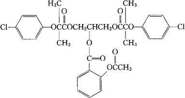 C32H32Cl2O10=647.50 2-羟-1-(羟甲基)乙基水杨酸酯2-乙酸酯双[2-(对-氯苯氧基)-2-甲基丙酸酯]。 2-Hydroxy-1-(hydroxymethyl)ethyl salicylate 2-acetate bis 2-(p-chlorophenoxy)-2-methylpropionate. 2-[2-(4-氯苯氧基)-2-甲基-1-氧代丙氧]-1-[[2-(4-氯苯氧基)-2-甲基-1-氧代丙氧]甲基]乙基-2-(乙酰氧基)苯甲酸酯。 2-[2-(4-Chorophenoxy)-2-methyl-1-oxopropoxy]-1-[[2-(4-chlorophenoxy)-2-methyl-1-oxopropoxy]methyl]ethyl-2-(acetyloxy)benzoate. 降血脂药。 祛腈柳丙酯。 Salafibrate,Asclopan. INN,USAN.  |