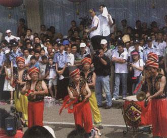 鼓吹乐是以打击乐器、吹奏乐器等合奏形式为主的音乐,在中国音乐史上曾形成为重要的乐种。 最初常用鼓、角、箫(排箫)、笳等乐器,曲目中亦常有歌词,可供歌唱。 永年鼓吹乐在河北冀东南鼓吹乐中最具代表性,是河北省最有影响的民间器乐曲种之一。永年鼓吹乐演奏方式多样,主要有吹奏乐、打击乐和咔戏三种。它曲目丰富,包括杂牌曲、套曲和吹咔曲3种,现有曲目200余首,曲牌50余种,很多曲目为永年所独有。其演奏风格粗犷热烈,欢快活泼,具有鲜明的地域特色。其主吹乐器为罗艺。 常见曲目有《一枝花》、《太行情》、《小放驴》、《大登殿》、《抬花轿》、《大放驴》等。永年鼓吹乐主要以家族方式传承。 抚宁鼓吹乐演奏方式多样,技巧独特,吹奏与形体动作表演有机地结合,演奏风格粗犷有力,活泼风趣,热烈诙谐,具有浓郁的乡土气息。抚宁鼓吹乐主要用于婚丧嫁娶、年节喜庆和民间舞蹈的伴奏,历来深受群众欢迎。它以家传、干亲拜把子和拜师收徒3种方式传承,历代人才云集,名家辈出。抚宁鼓吹乐乐器形制十分独特,不同形制的各类唢呐是其主奏乐器,此外还有用于咔戏的“咔碗”、花吹中用的“口琴”及其他多种常用乐器。  土家族打溜子表演 |