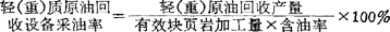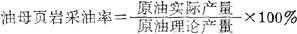 释义 | 油母页岩采油率 指一定时期内用油母页岩干馏法制取人造石油的实际产量与理论产量之比。 用百分数表示。反映油母页岩采油操作水平和设备条件的指标。 计算公式为: 式中:原油实际产量指经过脱水处理的净油产量,但包括干馏炉原油产量和干馏气体回收的轻(重)质油产量。 原油理论产量=入炉块页岩量×平均含油率 或: =∑(各批入炉块页岩量×该批含油率) 如果一个企业中有不同的炉型,可按不同炉型分别计算采油率。如: 式中有效块页岩加工量指在轻(重)质原油回收设备开动时间内干馏炉所加工的块页岩的数量。 |