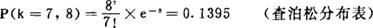 是概率论中重要的概率分布之一。 法国数学家泊松提出。设随机变量x所有可能取值为0,1,2,……,而且各个值的概率为  时,则称x服从泊松分布。 式中,k表示在一段时间或一个特定区域内的成功数,λ表示这个成功数的平均数。这里,一段时间的长短并不限制,如一年、一月、一日或一分钟。特定区域可以是线段、面积或一件材料等。 泊松分布有如下特点:第一,只由一个参数λ来决定;第二,对于固定的λ,当λ增大时,P(k,λ)先随之增加,当达到极大时,又随著k的增大而减少;第三,平均值为λ,标准差为 。 泊松分布常用来研究稀疏事件频数的分布,如布匹上单位面积的疵点数,纺纱车间在一定时间内断头根数,铸件表面所含的砂眼气泡数,一批产品中废品率等,它们都服从泊松分布。泊松分布在管理科学、运筹学以及物理学中均有重要地位。由于泊松分布的计算比较繁琐,所以统计学者已经计算出泊松分布表,可供人们查用,见本书附录。 例如,平均1000只螺栓中有一只废品。 现抽取8000只螺栓为随机样本, 求:(1)其中有7只废品数的概率; (2)其中废品数少于7只的概率。 解:因n=8000,P=0.001,所抽取的样本单位数很大,而概率P却很小,故可用泊松分布求其近似值。 令k表示废品数,则λ=8000×0.001=8,于是: (1)废品数为7,即K=7  8000件中废品数为7只的概率为0.1395; (2)废品数小于7,即k<7,应包括k=0,1,2,3,4,5,6 8000件中废品数少于7只的概率为0.3134。 故 (查泊松分布表) |