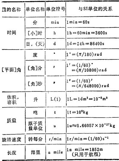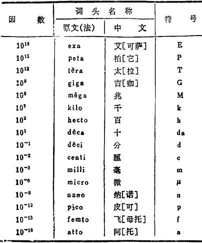 释义 | 法定计量单位 见表1.10-5~1,10-9(摘自GB3100-93)。 表1.10-5 国际单位制的基本单位 注: ❷ 升的符号中,小写字母1为备用符号。 ❸ 周、月、年(年的符号为a)为一般常用时间单位。 ❹ r为转的符号。 ❺ 人民生活和贸易中,质量习惯称为重量。 表1.10-9 用于构成十进倍数和分数单位的词头 注: ❷ 104称为万,108称为亿,1012称为万亿,这类数词的使用不受词头名称的影响,但不应与词头混淆。 ❸ 〔 〕内的字,是在不致混淆的情况下,可以省略的字。 |