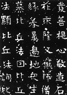 【简介】:  北齐武平七年(576)正月刻。正书。五行,行十八字。前后题名各三列,列十一行。《中国书法大辞典》著录。 【赏析】: 《法远等五十人造像记》字势方正紧密,用笔多见中锋并且内涵筋骨,点画线条不故爲态势,给人以朴拙、涵容、和谐的气度与美的享受。 这类作品不求锋芒毕露的雄强奔放或风流潇洒,不求技巧、形式的完整和完美,具有“心手达情”、“以意驭笔”的创作心态。意之所达,足以适情,通过作者对书法的独到理解和把握来展示他那与常俗常情颇不相同的审美观念与内心世界。这种表现手法虽然以朴拙的形式出现,却要能不落痕迹、纯任自然,道家思想的“无”与佛学精神的“空”以及美学中“残缺的美”都可以用来表述这种不重常形、不拘常法、不泥常理而使精神内敛的自然与含蓄的美。这种审美特徵与原理的把握不在于推阐而在于意会,它也是中国古代书法艺术思想的理论支柱之一。《法远等五十人造像记》的风格可以帮助人们认识到这一点。 |