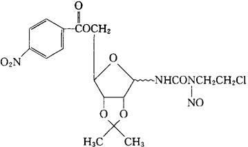 释义 | 波呋莫司汀 C18H21ClN4O9=472.84 CAS-55102-44-8 1-(2-氯乙基)-3-(2,3-O-异丙烯基-D-呋喃核糖基)-1-亚硝基脲5′-(对-硝基苯甲酸酯)。 1-(2-Chloroethyl)-3-(2,3-O-isopropylidene-D-ribofuranosyl)-1-nitrosourea 5′-(p-nitrobenzoate). 抗肿瘤药,免疫抑制药。 Bofumustine,ICIG 1105. INN,USAN. |