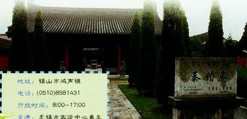 坐落在锡山市鸿声镇境内的鸿山南麓,距梅村镇泰伯庙3公里。鸿山原名铁山,因周武王封泰伯后裔为吴国伯爵国君,故有古皇山、吴王墩、皇陵之称。后因东汉高士梁鸿与其妻孟光在此隐居,明嘉靖年间(1522—1566)更名为鸿山。 泰伯墓占地20亩,始建于东汉永兴二年(154),后历代都曾有修建。泰伯为周太王长子,为让王位,偕弟仲雍避居江南,在梅里(今梅村)建立“勾吴国”,成为开发江南的始祖,创立了吴文化,孔子称泰伯为“至德”,司马迁在《史记》中把他列为“世家”第一。泰伯墓由棂星门、享堂、丹陛甬道、拜台、月台、泰伯墓四面碑、茔域罗城和墓墩构成,1982年被列为省级文物保护单位,1986年被国务院列为太湖风景区的景点之一。 为了缅怀这位开拓江南的吴国始祖,每逢清明节前后,方圆几十里的百姓和泰伯后裔便会自发地祭祀泰伯,并由此形成了一年一度的鸿山庙会。每年前往祭祀、踏青的人数达几十万。  地址:锡山市鸿声镇 电话:(0510)8581431 开放时间:8∶00—17∶00 交通:无锡市客运中心乘车 |