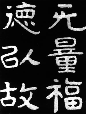 | 释义 | 泰山经石峪 【作品赏析】: 又名《泰山金刚经》、《经石峪金刚经》。 字径五十厘米,字数逾千。是现存摩崖刻石中形制和规模最大的,被尊为“大字鼻祖”、“榜书之宗”。刻于泰山斗母宫东北一公里山谷之溪床上。望之十分壮观。 原刻无书人姓名和刻制年代。人们根据书法风格和同期写经碑刻比较,断为北齐人书。 《泰山经石峪》运笔无明显的起止和顿挫,转折圆缓。写这样大的字,普通毛笔已不够用,需要特制。 从字迹看,其笔的制作并不精良,没有多少弹性。字呈扁方,结法平直宽博。有些横画,特别是捺笔,尚存明显隶意。总的效果给人以从容安详、不激不厉、高古脱尘之感。 这同佛家教义所倡导的清心寡欲十分吻合,而同有些书家的字所表现出来的险绝、奔放情调有明显差距。而同《唐邕写经》、水牛山《文殊般若经》等佛家石刻气息比较接近。 杨守敬《学书迩言》评曰:“北齐《泰山经石峪》,以径尺之大书,如作小楷,纡徐容与,绝无剑拔弩张之迹。擘窠大书,此为极则。 ”这话是比较中肯的。 。