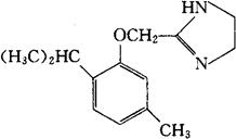 释义 | 泰马唑啉 C14H20N2O=232.33 CAS-24243-97-8 2-(2-异丙基-5-甲基苯氧甲基)-2-咪唑啉。 2-(2-Isopropyl-5-methylphenoxymethyl)-2-imidazoline. 2-[(百里基氧)甲基]-2-咪唑啉。 2-[(Thymyloxy)methyl-]-2-imidazoline. 血管收缩药,鼻粘膜充血消除药。 Tymazoline,Pernazene,Thymazen. |