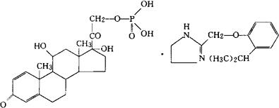 释义 | 泼那唑啉 C22H29O8P·C13H18N2O=670.74 CAS-6693-90-9 11β,17,21-三羟孕甾-1,4-二烯-3,20-二酮21-(二-H-磷酸酯与2-[2-异丙苯氧)甲基]-2-咪唑啉的化合物。 11β,17,21-Trihydroxypregna-1,4-diene-3,20-dione21-(di-H phosphate)compound with 2-[2-isopropylphenoxy)methyl]-2-imidazoline. 血管扩张药。 Prednazoline. INN,DCF,USAN. |