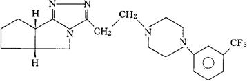 C21H26F3N5=405.47 CAS-108785-69-9 (±)-顺式-5,5a,6,7,8,8α-六氢-3-[2-[4-(α,α,α-三氟-间-甲苯基)-1-哌嗪基]乙基]环戊二烯并[3,4]吡咯并[2,1-c]-均-三唑。 (±)-cis-5,5a,6,7,8,8a-Hexahydro-3-[2-[4-(α,α,α-trifluoro-rn-tolyl)-1-piperazinyl]ethyl]cyclopenta[3,4]pyrrolo[2,1-c]-s-triazole. 抗焦虑药,镇痛药,安定药。 Lorpiprazole. INN,USAN.