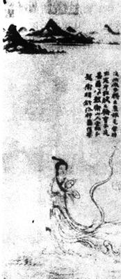 【作品赏析】: 此图是一幅白描人物画,根据三国诗人曹植的《洛神赋》画成。 相传曹植和其兄曹丕同时爱上美女甄氏,但其父曹操却把甄氏许配给曹丕。后来,曹丕做了皇帝,甄氏虽被立为皇后,但不久蒙受妒陷冤屈死去。以后,曹丕将其遗物——玉带金缕枕送予曹植。曹植睹物伤情,返回封地途中经过洛水时,更诱发了他长期被压抑的怀恋之情,于是托梦洛水女神来抒发,留下不朽名作《洛神赋》。《洛神赋》文笔优美,想象丰富,缠意绵绵。从名画家顾恺之的《洛神赋图》后,历代画家以《洛神赋》为画题的,层出不穷。元代则以卫九鼎的《洛神赋》最著名。卫氏的《洛神图》没有采取传统的长卷形式,而是以独幅画面展现洛神的风采。 但静止的独幅洛神,又是流动的长卷洛神赋图的一个情节。 卫九鼎画洛神微步水上,倪瓒题道:“凌波微步袜生尘,谁见当时窈窕身?能赋已输曹子建,善图惟数卫山人。”此图作于1368年,画法师李公麟,不在王振鹏、张渥之下。。 【作者介绍】: 卫九鼎,生卒年不详,约活跃于元朝末期,字明铉,天台(今浙江台州)人。 工界画,善山水,师王振鹏。笔力遒劲,刻画精微。 。  元 卫九鼎 轴 纸本 纵90.8厘米 横31.8厘米 藏台北故宫博物院 |