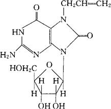 释义 | 洛索立宾 C13H17N5O6=339.31 CAS-121288-39-9 7,8-二氢-8-氧代-7-(2-丙烯基)-鸟苷。 Guanosine,7,8-dihydro-8-oxo-7-(2-propenyl)-.7-烯丙基-2-氨基-9-β-D-呋喃核糖基嘌呤-6,8(1H,9H)-二酮。 7-Allyl-2-amino-9-β-D-ribofuranosylpurine-6,8(1H,9H)-dione. 免疫兴奋药。 Loxoribine,RWJ21757. INN,USAN. |