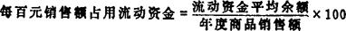 指销售一百元商品所需的流动资金。从流动资金占用率的大小,可以看出企业流动资金使用效率的高低,反映企业的经营管理水平。其计算公式为: