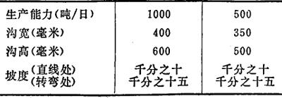 1.结构与要求 流送沟断面见图2-3。流送沟可用铁板或混凝土制成,简易的沟可用砖砌成,抹以水泥面。但在寒冷地区当水渗入而冻冰,产生膨胀而导致崩裂,造成维修工作量大,因此寒冷地区常用石块砌成。 对流送沟的坡度要求为 直线部分 15~20毫米/米 转弯部分 18~25毫米/米 曲率半径 不小于3米 主沟水面标高应考虑停水时不致倒流而溢出窖内的沟面。 沟中菜水混合物的流速同坡度、沟的材料、菜水比、水中含泥量等有关;同时应考虑到流速较慢时砂、石等将沉积下来,而流速较快时除石除草的效果将降低,一般以0.6~1.0米/秒为宜。为防止砂粒大量下沉,决不应低于0.5米/秒。 沟宽与沟高比一般取1:1.5~1:2,宽不小于350毫米,在极限值内随生产能力增大而加宽。 2.生产能力计算  式中 A——生产能力(处理甜菜量,吨/日) Fe——沟的有效断面(浸润断面,米2) G——沟中每公斤甜菜用水量(公斤) 有水力冲卸时 7 无水力冲卸时 5 v——菜水混合物在沟中流速(米/秒),也可用下式求出:  式中 C——流送沟不光滑系数  I——沟的坡度(米/米) P——沟的浸润周边(米) K——不均衡系数,取0.7~0.8 3.不同规模工厂采用流送沟尺寸(见表2-7) 表2-7 流送沟规格  注:生产能力系指设计能力 |