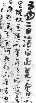 【简介】:  古楼兰出土魏晋墨迹。纸本。章草。残剩三行,整字三十七。系一书信。刊于日本《书道全集》(三)。 【赏析】: 这件晋人眞迹与传本王羲之《寒切帖》、《姨母帖》、《初月帖》、《十七帖》风神酷似。从整体上看,此帖苍郁浑劲,点画狼藉,沉著痛快,墨气淋漓,透出书写者的文化修养与书法技艺。其体势已属今草範畴,字中略带左低右昂斜势,章草遗意已不甚明显;字间少牵丝映带,多以点代线,极凝炼简洁,线条多内涵,古意可掬。再作局部比较:帖中的“月”、“日”、“白”、“不”等字都与右军书通神。 文物发掘胜于雄辩。此帖的艺术价値当不在文物价値以下,可与传本王右军书相媲美。 书法发展到晋代已进入一个重要的转变时期,楷书、行书、草书都已出现。从残纸上的楷书来看,已初步成形,但尙未成熟,在笔画上还带有一定的隷书笔意。草书似已脱离章草阶段。但从笔势内敛、结体简约、字字独立而无牵丝相连通的特点来看,尙依稀可以见出章草的些许意味。値得注意的是,这些残纸与王羲之从事书法活动的时期仅仅稍爲早一点,该草书与王羲之的《初月》、《寒切》、《远宦》、《瞻近》、《龙保》、《十七》诸帖的体段相近,而与某些王书则相距甚远。 |