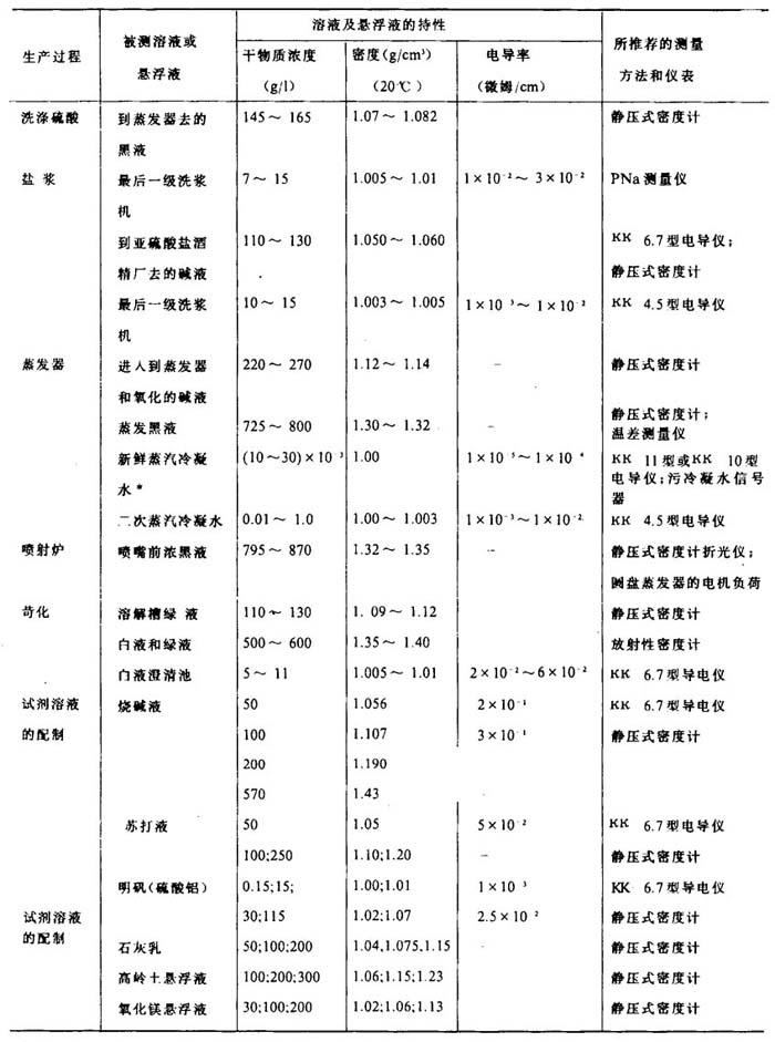 释义 | 浓度的测量计算 [说明]在制浆造纸生产的许多工艺过程中,必须测量单一成分溶液(如碱液)的浓度,或者各种成分混合液(绿液和黑液、洗涤水、污冷凝水等等)的浓度,或者是悬浮液(自水)的浓度等。以上这些可以采用相应的溶液和悬浮液与某些指标的关系加以确定。 1.电解液浓度与溶液比电导率的关系 2.溶液和悬浮液浓度与其密度的关系 [说明]溶液密度与浓度的关系几乎是线性的,对于在制浆造纸生产中所用的大多数的溶液和悬浮液来说,浓度变化10g/L,就相当于密度变化0.005~0.01gcm3。目前生产的密度计最低测量范围为0.04~0.05g/cm3。不同溶液和悬浮液的密度与其浓度的关系见图4-6-6。 式中 C——浓度变送器输出信号的变换值 Cx——浓度变送器的输出信号(kg/cm2) K1——对于变送器一定测量范围的常数,考虑到测量下限压缩到0,它等于浓度变送器测量范围对该范围上限值的比例 表4-6-1 测量各种溶液和县浮液浓度的方法 *当碱液沾污了冷凝水时,必须测量。 4.黑液浓度的测量计算 [说明]黑液的浓度是根据黑液温差进行测量的,溶液与纯溶剂(黑液-水)沸点的温差,称为溶液的温差。该温差值取决于溶液的浓度、溶液上的压力和溶液的特性。溶液浓度越大,则其沸点的温度越高,因而,其温差值就越大。因此,测最溶液的温差就可确定其浓度的大小。对于黑液,该温差值可用下式近似计算。 式中 △t——温度差(℃) n——黑液的重量浓度(g/kg) ε——表示溶液的系数,水为0.51;黑液为40 M-公称摩尔质量 |