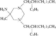 C21H45N3=339.61 CAS-141-94-6 5-氨基1,3-双(2-乙基己基)六氢-5-甲基嘧啶。 5-Amino1,3-bis(2-ethylhexyl)hexahydro-5-methylpyrimidine. 1,3-双(2-乙基己基)六氢-5-甲基-5-嘧啶胺。 1,3-bis(2 Ethylhexyl)hexahydro-5-methyl-5-pyrimidinamine. 抗真菌药,抗菌药。 Hexetidine,Sterisil,Oraldene,Hexopyrimidine. INN,BAN,USAN,MI.  |