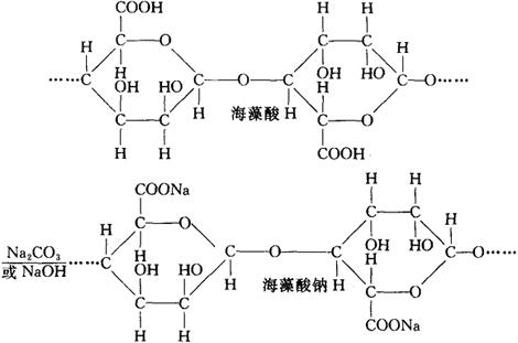 主要是海藻酸的碱金属盐,其中最多的是钠盐,因此称海藻酸钠。海藻酸与海藻酸钠的反应式: