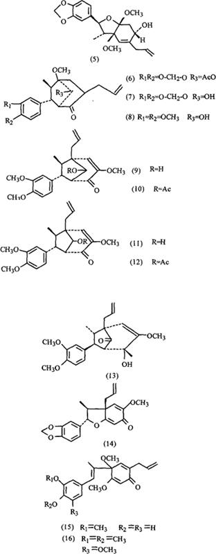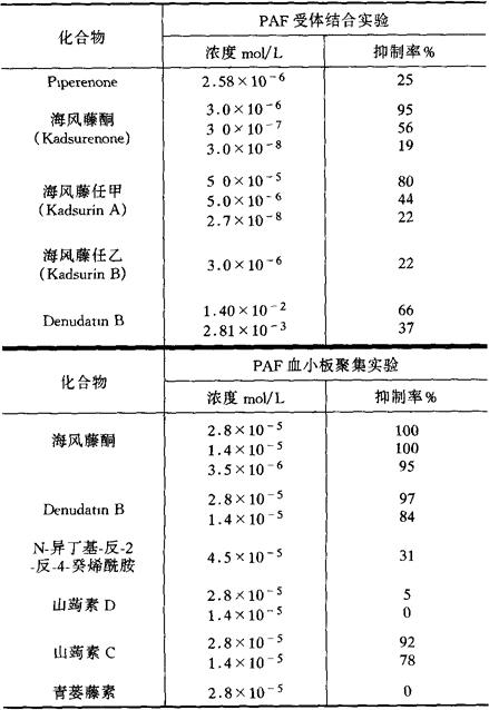 释义 | 海风藤 【名称出处】:《本草再新》 【概况】: 异名 风藤、巴岩香(《中药志》)。 基源 为胡椒科胡椒属植物风藤及山蒟的藤茎。 原植物 风藤Piper futokadsura Sieb.et Zucc.[P.kadsura(Choisy)Ohwi,P.hancei Maxim.]和山蒟Pipei hancei Maxim. 形态 风藤为木质藤本,茎有纵棱,节上生根。叶近革质,具白色腺点,叶片卵形或长卵形,长6~12cm,宽3.5~7cm,顶端短尖或钝,基部心形,叶面无毛,背面常具短柔毛;叶脉5条;叶柄长1~1.5cm;叶鞘仅限于基部具有。 花单性,雌雄异株,聚集成与叶对生的穗状花序;雄花序长3~3.5cm;总花梗略短于叶柄,花序轴被微硬毛;苞片圆形,近无柄,盾状,叶面具白色粗毛;雄蕊2~3枚,花丝短。 雌花序短于叶片;总花梗与叶梗等长;苞片和花序轴与雄花序的相同;子房球形,离生,柱头3~4,线形,被短柔毛。浆果球形,直径3~4mm。 花期5~8月。(图见《中国植物志》.第20卷.第1分册.49页.图版16∶7-9) 生境与分布 生于低海拔林中,攀援于树上或石上。分布于中国台湾、福建、浙江等。日本、朝鲜亦有分布。 山蒟与风藤的主要不同之处为除花序轴和苞片柄外均无毛;叶脉5~7条,叶鞘长约为叶柄的1/2;雄蕊2枚,柱头4,稀3。生于山地溪涧边、密林或疏林中,攀援于树上或石上。 分布于浙江、福建、江西、湖南、广东、广西、贵州及云南。。【生药】: 采集 8~10月割取茎藤,除去根及叶,晒干。 药材主产于福建、浙江、台湾。 鉴别 茎藤扁圆柱形,微弯曲,长15~60cm,直径3~7mm;表面灰褐色或褐色,粗糙,有纵向纹理,节膨大,节间长4.5~9cm,节上不定根长短不等。 质轻而脆,折断时纤维状,皮部窄,木部灰黄色,有许多小孔,射线放射状,灰白色,木部与皮部交界处小洞成环状,中央有灰褐色髓。 气清香,味辛。 以茎条粗壮、均匀、气香者为佳。 贮藏 置干燥处。 。【化学】:风藤茎、叶含细叶青蒌藤素(Futoxide,巴豆环氧素,Crotepoxide)(1)、细叶青蒌藤烯酮(Futoenone)、细叶青蒌藤醌醇(Futoquinol)、细叶青蒌藤酰胺(Futoamide),其中细叶青蒌藤素含量较高,且有抑制肿瘤的作用,还含β-谷甾醇、豆甾醇及挥发油,油中主含α-蒎烯(α-Pinene)、β、蒎烯、柠檬烯(Limonene)、香桧烯(Sabinene)、莰烯(Camphene)、异细辛醚(Isoasarone)[1]。 叶中含昆虫拒食剂胡椒烯酮(Piperenone)(2)[2]和异细辛脑(Isoasarone)[3],抑制小鼠路易士肺癌的细叶青蒌滕素[4]。木脂素Isofutoquinol A、B,Isodihydrofutoquinol A和B[5]。血小板活化因子(PAF)拮抗剂5-烯丙基-2(3,4-二甲氧基苯基)-3aα-甲氧基-3-甲基-2,3,3a,6-四氢-6-氧代苯并呋喃(5-Allyl-2(3,4-dimethoxyphenyl)-3aα-methoxy-3-methyl-2,3,3a,6-tetrahydro-6-oxobenzofuran)[6]。新木脂素海风藤酮(Kadsurenone)(3)、海风藤任甲(KadsurinA)(4)、海风藤任乙(KadsurinB)(5)[7,8]。 其中海风藤酮是血小板活化因子拮抗剂[9]。从海风藤中(P.kadsura)还分得二环辛烷类(Bicyclooctanoid)新的木脂素,有海风藤素(Kadsurenin)A(6)、B(7)、C(8)、G(9)、H(10)、I(11)、J(12)[10~12]。 从山蒟藤茎中分离得到5种木脂素类化合物,即海风藤酮(Kadsurenone)、玉兰素(Denudatin)B和山蒟素(Hancinone;7S,8R,3′S1′-烯丙基-3′-甲氧基-7-(3,4-次甲二氧基苯基)-7,8,3′,6′-四氢-6′-氧苯并呋喃)[13],山蒟醇(Hancinol)(13)和布蔷薇木素(Burchellin)(14)以及3个生物碱:风藤酰胺(Futoamide)、荜拔明宁碱(Piperlonguminine)和N-异丁基-反-2-反-4-癸二烯酰胺[14]。山蒟中还含有2个木脂素山蒟素B(Hancinone)(15)和山蒟素C(Hancinone C)(16)以及细叶青蒌藤素(Crotepoxide)、β-谷甾醇等[15]。 后又分得山蒟素D(Hancinone D)[16]。 参考文献 [1] Phytochemistry 1969;8(1):321 [2] CA 1975;83:114121j [3] CA 1976;85:74906b [4] Tetrahedron Lett 1975;(37):3187 [5] Tetrahedron Lett 1976;(48):4371 [6] CA 1985;103:200867v [7] Phytochemistry 1985;24(9):2079 [8] J Chromatogr 1989;484:369 [9] CA 1989;111:33353f [10] Chin Chem Lett 1992;3(7):521 [11] Chin Chem Lett 1992;3(8):635 [12] Chin Chem Lett 1991;2(8):623 [13] 药学学报 1986;21(5):361 [14] 药学学报 1987;22(3):196 [15] 植物学报 1987;29(3):293 [16] 药学学报 1989;24(6):438。【药理】: 海风藤用于治疗风湿和关节炎,以血小板活化因子(PAF)受体结合实验和PAF血小板聚集实验测定表明海风藤中所含的成分大多有明显的抑制作用[1~3]。 本品所含的细叶青蒌藤素(又名巴豆环氧素)具有抑制肿瘤生长作用。对小鼠Lewis肺癌,剂量为200mg/kg,其T/C值为36%,对大鼠瓦克癌256,剂量为200mg/kg、300mg/kg和450mg/kg时,其T/C值分别为50%、33%和22%[4]。 参考文献 [1] Phytochemistry 1985;24(9):2079 [2] 药学学报 1986;21(5):361 [3] 药学学报 1989;24(6):438 [4] 植物药有效成分手册.人民卫生出版社,1986:263 【药性】: 性味 辛、苦,微温。 《中药志》:“辛,微温。” 归经 《本草再新》:“入心、肾二经。” 功效 祛风湿,通经络,理气。 主治 风寒湿痹,关节疼痛,筋脉拘挛,跌打损伤,哮喘,久咳。 ❶ 《本草再新》:“行经络,和血脉,宽中理气,下湿除风,理腰脚气,治疝,安胎。” 用法用量 内服:煎汤,6~15g;或浸酒。 。【临床应用】:配伍应用 ❶ 配络石藤,治风湿化热,关节肿痛,全身游走性疼痛。 ❷ 配青凤藤、桂枝、秦艽,治风寒湿痹,筋脉拘挛。 方选和验方 ❶ 《四川中药志》:“治跌打损伤:海风藤、大血藤、竹根七、山沉香、红牛膝、地乌龟。泡酒服。 ” 日服2次,每次10ml,早晚空腹服。服时不可加温,否则失效。 心脏病人及孕妇忌服,感冒及月经期暂停服。” 单方应用 《福建药物志》:“治风湿性关节炎:海风藤全草30g,水煎服。” |