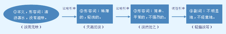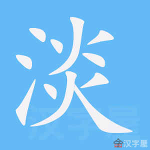 释义 | ![]() 形 (颜色)浅或(光色、光辉)不强。 【例句】她穿着一件颜色很~的花衣服。 【同义】淡薄;清淡 【辨析】“淡”是适于各种场合的通用词,可以重叠;“淡薄”强调光线稀少不厚密,多用于阳光、月光,书面语词。 【反义】浓 【例句】当淡淡的绿柳摇曳时,大地已显出~~的春色了。 ❶ 稀薄: 天高云~|江面上笼罩着~~的雾气。 浓 nóng ~墨重彩|~雾锁江。 厚 hòu 云层并不很~|飞机终于穿过了~~的云雾。 ❷ (颜色)比较浅: ~绿|这颜色太~|她的妆化得很~。 深 shēn ~红|~蓝色|~咖啡的上装|你别把客厅漆成~色。 ❸ 味道不浓: ~酒|这些菜都~而无味|她只喜欢~一些的香水味。 厚 hòu 这酒味儿极~。 醇 chún 敬上~酒一杯。 咸 xián ~鱼|~菜|你这菜做得太~了。 ❹ 不深刻: 平~|~漠|时间长了这事会~化的|大家对那事的印象都很~。 深 shēn ~明大义|理解得并不~|我们对此事印象比较~。 ❺ 生意不太好: ~季|~月|销售清~。 旺 wàng 产销两~|买卖特别~|这种产品在市场上~得很。 ❶不浓、稀薄;颜色浅。能重叠。 a.作谓语,可带补语。 这幅画颜色太~|今晚却很好,虽然月光也还是~~的|我爱喝浓茶,这杯~了一些。 b.作定语。 清晨,田野上笼罩着一层~~的薄雾。 ❷不够咸。作谓语,可带补语。 汤太~了|汤~了一些。 ❸冷淡;不热心。能重叠。 a.作谓语。 那表情~~的,那声音也是~~的。 b.作状语。 他~~地答应了一声。 ❹营业不旺盛。常用作语素构成合成词。 ~月|~季。 【反】 ❶浓 ❷咸 【词语】 淡泊 淡薄 淡菜 淡季 淡漠 淡青 淡然 淡水 淡水湖 淡忘 淡雅 淡月 淡竹 字源解说 炎,既是声旁也是形旁,是“啖”的省略,表示进食、体味。淡,篆文 ![]() ![]() ![]() ![]() ![]() ![]() 附 文言版《説文解字》:淡,薄味也。从水炎聲。 附 白话版《说文解字》:淡,味薄。字形采用“水”作边旁,“炎”是声旁。 引申线索 ![]() 【字族索引】 炎 【同音字】 dàn |
