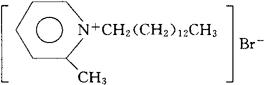 释义 | 消毒净 C20H36BrN=380.43 溴化十四烷基-2-甲基吡啶。 Tetradecyl-2-methylpyridinium bromide. 消毒防腐药。用于各种金属器械、麻醉用具、手、皮肤、以及环境的消毒等。 Myristylpicolinium Bromide. |