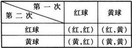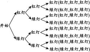 1.树状图 2.列表法 注意 用树状图和列表法求概率时,应注意各种结果出现的可能性务必相同. 例1 袋中有一个红球和一个黄球,它们除了颜色外都相同,随机从中摸出一球,记录下颜色后放回袋中,充分摇匀后,再随机摸出一球,两次都摸到红球的概率是多少? 解 两次都摸到红球的概率为1/4 用树状图表示为:  用表格表示为  例2 佳佳有三套(上衣和裙子)红色、黄色、蓝色的外衣: (1)用表格列出佳佳穿外衣所有可能的结果. (2)求出佳佳穿同一颜色外衣的概率. 解 (1)  (2)P(同一颜色外衣)=3/9=1/3. 例3 某人乘公交车上班的路上,有3个十字路口有红绿灯,设车辆过每个路口不停车和停车的可能性一样. (1)用树状图表示出这辆公交车过3个路口时可能出现的所有结果. (2)求出这辆公交车在每个路口都不停车的概率. 解 (1)  (2)P(不停车)=P(全是绿灯)=1/8=0.125 |
