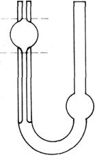 液体在外力作用下流动,但因内力而受阻的性质称为液体的粘度。 粘度定义为两平行流体层的速度梯度为1厘米/秒·厘米时单位面积上所受到的阻力(下图)。粘滞力用牛顿方程式表示,即 f=ηA(dv/dx) (1) 式中f为粘滞力(达因);A为面积(厘米2);dv/dx为速度梯度(秒-1);η为绝对粘度系数,简称粘度,单位为泊。 但常用更小的单位,毫泊和厘泊。例如20℃水的粘度为10.087毫泊。 因为直接测定液体粘度的绝对值有困难,通常用奥斯特瓦尔德(OStwald)毛细管粘度计、落球粘度计或转筒式粘度计等来测量粘度的相对值。前者如右图所示。其构造是两个玻璃泡中间由一长毛细管隔开。测定时将待测液体吸满上泡,记录液体弯月面降落时经过上泡的上面标线和下面标线之间所需的时间(流出时间);在同一支粘度计中,换上已知粘奥斯特瓦尔德粘度计度的液体,同样测定流出时间。 根据下式计算粘度  式中ρ1和e2是两种液体的密度;t1和t2是流出时间。 粘度是流体的重要物理性质之一,它在钻井泥浆、油漆、橡胶、塑料、食品等方面的生产和科学研究中具有很重要的意义。