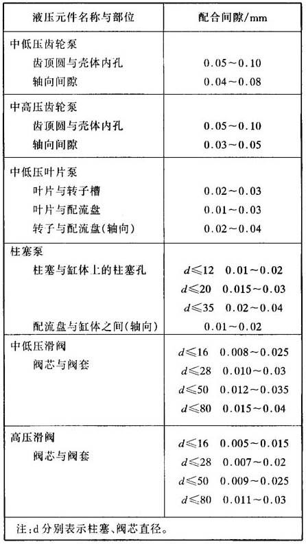 释义 | 液压件修理 液压元件标准化、通用化和系列化程度较高,因此一般都具有可维修性。液压元件经过修理和试验后,其技术指标和性能达到要求者仍可继续使用。用户若不具备一定条件,切勿自行修理。 (1)更换修理法 液压系统由于某个元件发生故障,并一时难于排除时,可将该元件拆卸,换上合格的元件,先使设备正常运转。对拆下的元件进行检修,并在试验台上进行性能测试,符合要求就可作为备件待用。采用更换修理,要有更换的备件、修理用的易损件和测试用的试验台。 (2)液压件可修理的内容与修理方法 液压元件使用到一定程度,由于零件磨损、疲劳或密封件老化失效,技术指标已达不到使用要求,虽然还未发展到完全不能用的程度,也应该进行修理。若不及时修理,继续使用下去,不仅使液压系统工作不可靠,而且会造成无法修复而报废的结果。 修理液压元件时,零件间相互配合应达到规定的间隙要求。常用液压元件修理的配合间隙如表39.2-1所示。 表39.2-1 常用液压元件的配合间隙(供修理用) A.齿轮泵或齿轮马达可修理的内容与方法 ·齿轮两侧面与泵盖之间磨损后,其配合间隙比产品图纸规定值增大在30%左右时,可用研磨的方法进行修复。 ·轴用旋转油封件或其它密封件失效,丧失密封性能时,应当更换密封件。对更换的新件质量要精心检查,安装时要注意唇口方向,注意保护唇口,不得损坏。 ·泵或马达的容积效率比规定值降低在10%~15%时,如果继续使用下去,不仅降低整个系统的效率,而且还会造成无法修复的后果。因此要及时进行检修。 B叶片泵或叶片马达可修理的内容与方法。 ·定子圈内表面有异常磨损,或有条痕存在,易造成压力波动和噪声。因此必须对定子圈内表面在专用磨床上进行修磨。如果定子圈内表面磨损不严重,可用油石修磨,使内表面光滑。磨损严重不能修复应更换新件。 ·配流盘有条状划痕及其它缺陷时,用研磨的方法进行修复。 ·个别叶片磨损、胶粘、折断,应清洗修磨或更换新件。 ·转子端面有划痕、磨损点、金属胶合,须进行修研。同时要对叶片宽度和定子圈厚度作相应修磨,使转子、叶片、定子圈三者配合间隙达到表39.2-1中规定的数值。 ·旋转轴用油封或其它密封件失效,丧失密封性能时,应更换新件。要认真检查更换新件的质量,安装时要注意唇口方向,防止损坏唇口。 ·泵或马达的容积效率比规定值降低10%~15%时,必须进行检修。 C.柱塞泵或柱塞马达可修理的内容与方法 ·柱塞与其配合的孔磨损后,其配合间隙比产品图纸规定值增大15%~20%时,应重新做柱塞,对孔进行配研修复。柱塞与其相配合孔的间隙应达到表39.2-1的规定值。 ·配流盘有磨损或有条状划痕,用研磨的方法进行修复。 ·转子端面有条状划痕或磨损,用研磨方法修复。 ·变量控制弹簧弹力不足时,将会影响变量性能,须更换弹簧。 ·变量控制阀的阀芯与阀孔磨损后,配合间隙比产品图纸规定值大15%~20%时,须做新阀芯并对阀孔进行配研修复。 ·泵或马达的容积效率比规定值降低10%~15%时,须进行检修。 ·旋转轴用油封或其它密封件失效,丧失密封性能时,应更换密封件。 D.液压缸可修理的内容和维修方法 ·活塞表面有划痕,造成漏油,活塞杆表面锈蚀严重、镀铬层脱落,要进行磨削,再镀铬修复。 ·活塞杆上防尘圈损坏不起防尘作用,污染物易于进入缸内,使活塞杆表面损坏,应更换防尘密封件。 ·活塞杆弯曲变形值大于图纸规定值的20%时,必须进行校正修复。 ·液压缸内泄漏量超过图纸规定值的三倍以上时,应查找泄漏原因。若是密封件失效,应更换新件。若因磨损造成活塞与缸筒配合间隙过大,应重新做活塞,保证配合间隙。 ·液压缸两端盖处有外泄漏,原因可能是:密封件老化、破损,紧固螺钉松动;也可能是紧固螺钉过长,未压紧端盖。应针对具体原因进行处理。 ·缓冲式液压缸,缓冲效果不良时,对缓冲装置进行检修。若是采用单向节流阀的缓冲装置,应检查单向阀的密封性能和节流阀的调节性能;若是采用缓冲活塞作为缓冲装置时,应检查缓冲活塞与缓冲套的配合间隙,如有拉毛、拉沟或间隙过大,应按图纸要求修理。装配后还应对缓冲性能进行试验。 E.液压阀可修理内容与维修方法 ·阀芯与阀套磨损后,配合间隙比产品图纸规定值增大20%~25%时,须做新阀芯与孔进行配研修复。 ·锥阀芯与阀座的圆锥面接触不良,封闭性能差时,应进行配研修复。 ·调压弹簧弯曲,变弱或折断时,应更换新弹簧。 ·密封件老化、失效,应更换新密封件。 ·阀类元件出现工作失常,如卡死、失灵、迟缓等现象时,应进拆洗检修。 (3)液压元件修理测试的主要内容 液压元件修理后,必须进行技术性能测试,这是考核液压元件修理质量的手段。通过试验来确定是否达到使用标准和使用要求。 液压元件的试验要有一台试验台。试验台结构可以简单一些。修理后元件的测试项目要比元件出厂试验的项目少,而且要求可低一些。 液压元件修理后必须测试下列项目: A.液压泵测试项目 压力 压力是液压泵主要性能参数,所以要做额定压力测验。 排量 排量也是液压泵的主要性能参数。在额定转速和额定压力下测试液压泵的排量。 容积效率 容积效率是衡量液压泵修理装配质量的一个重要指标。修理后的液压泵容积效率不得低于规定值。计算公式为 总效率 总效率也是衡量液压泵修理质量的重要